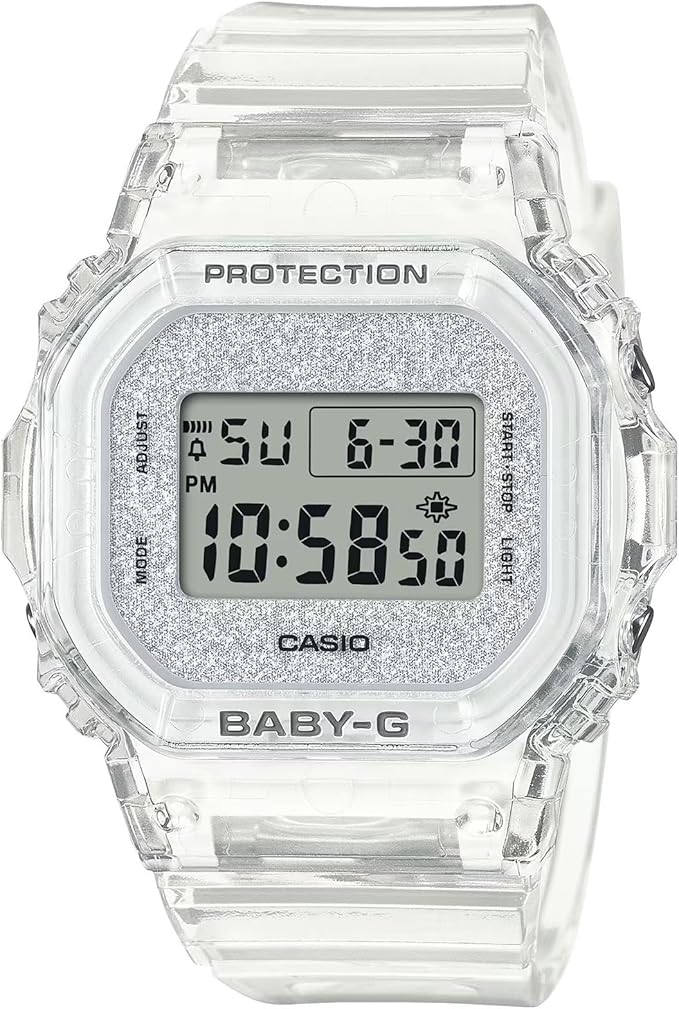 Descubre el carácter único del BABY‑G BGD‑565GC‑2: un reloj digital compacto y resistente, ideal para el día a día con un toque moderno. Su caja y correa de resina translúcida aportan un estilo urbano y desenfadado, mientras que la esfera con efecto brillante añade un toque elegante y juvenil. Este modelo combina diseño casual con funcionalidad: resistencia a golpes, resistencia al agua hasta 10 bares (100 m), cronómetro, temporizador, múltiples alarmas, calendario automático y luz LED para visibilidad nocturna. Ligero (unos 30 g) y con tamaño compacto (≈ 42,1 × 37,9 × 11,3 mm), resulta perfecto para muñecas pequeñas o para quien busca un reloj cómodo sin renunciar a estilo y prestaciones.