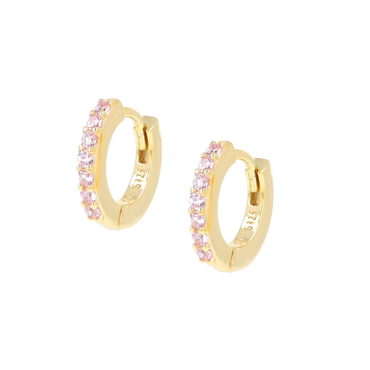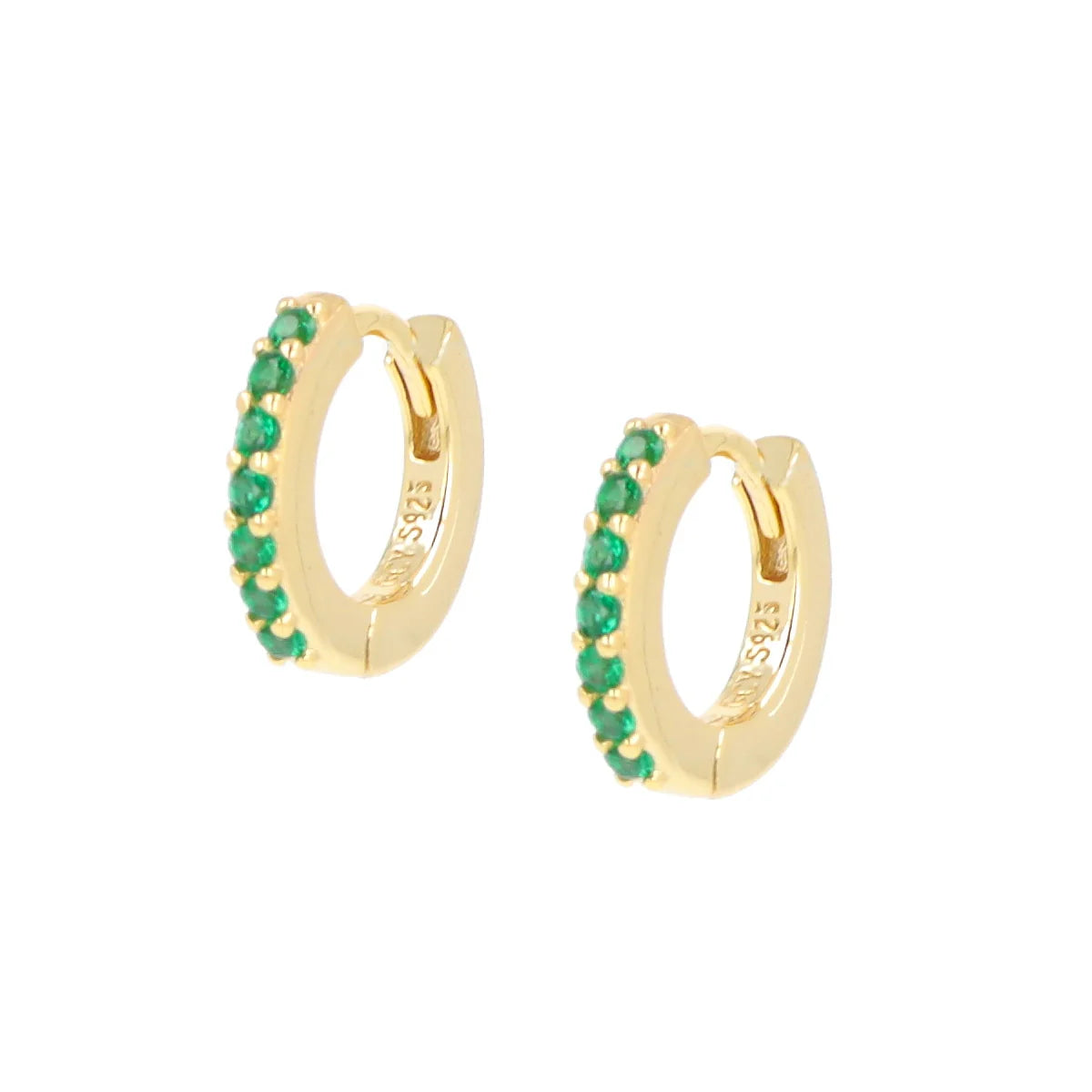 Pendientes de plata de ley con circonita en color - Oro - 1,2 cm de diámetro, piedras Ø 1,5 mm