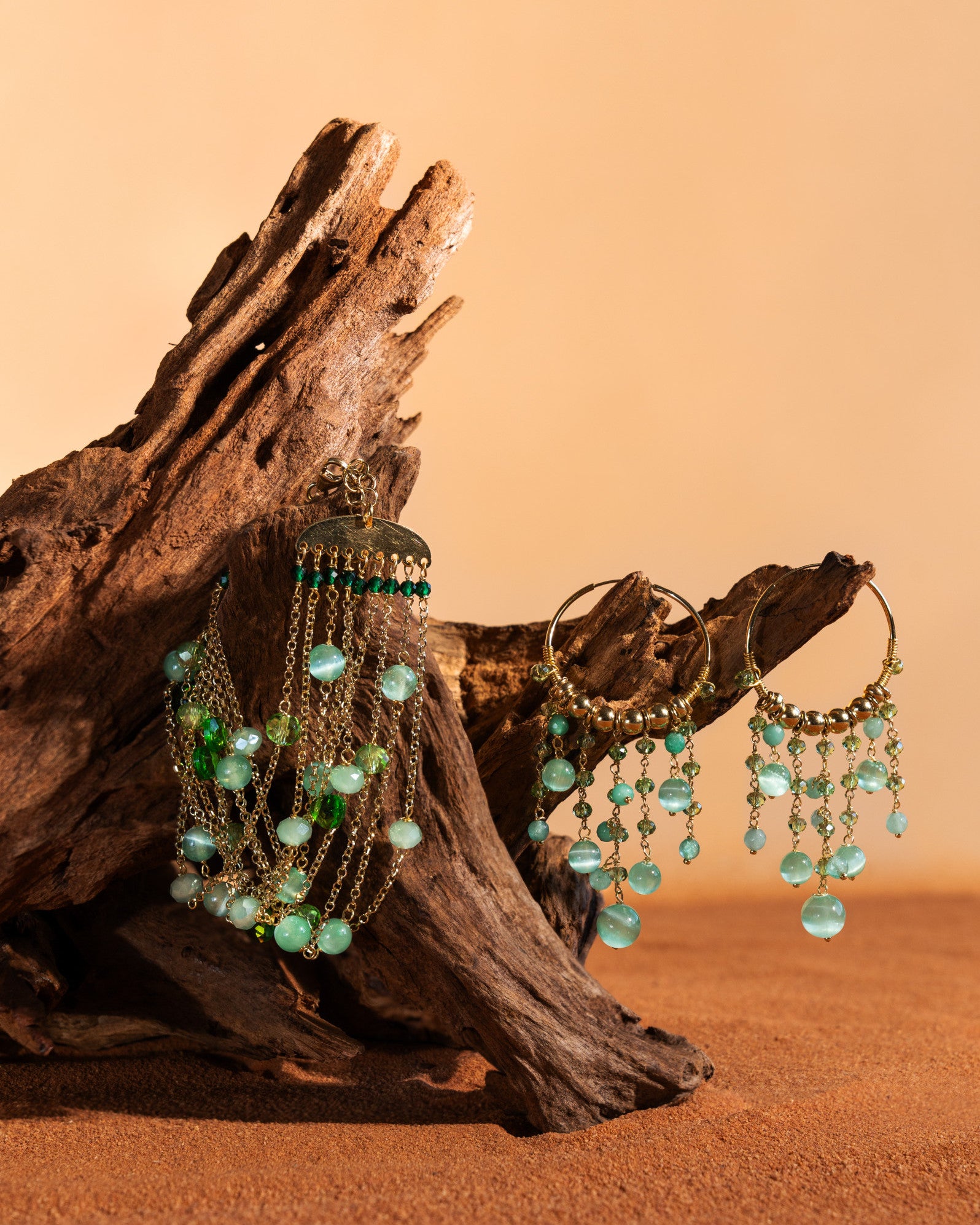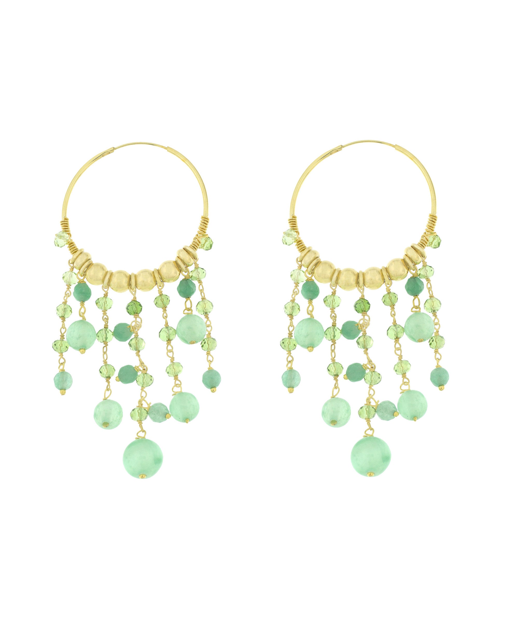Pendientes de aro con selenita verde y cristales — un diseño vibrante y natural, donde la piedra semipreciosa aporta un toque de equilibrio y serenidad, mientras los cristales ofrecen un brillo elegante. Perfectos para destacar tu estilo con un aire boho‑chic y sofisticado.
