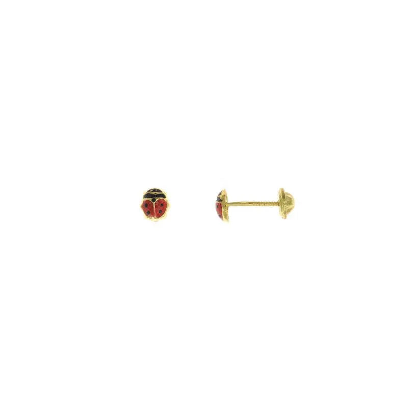 Pendientes Salvatore plata dorado mariquita esmalte rojo y negro