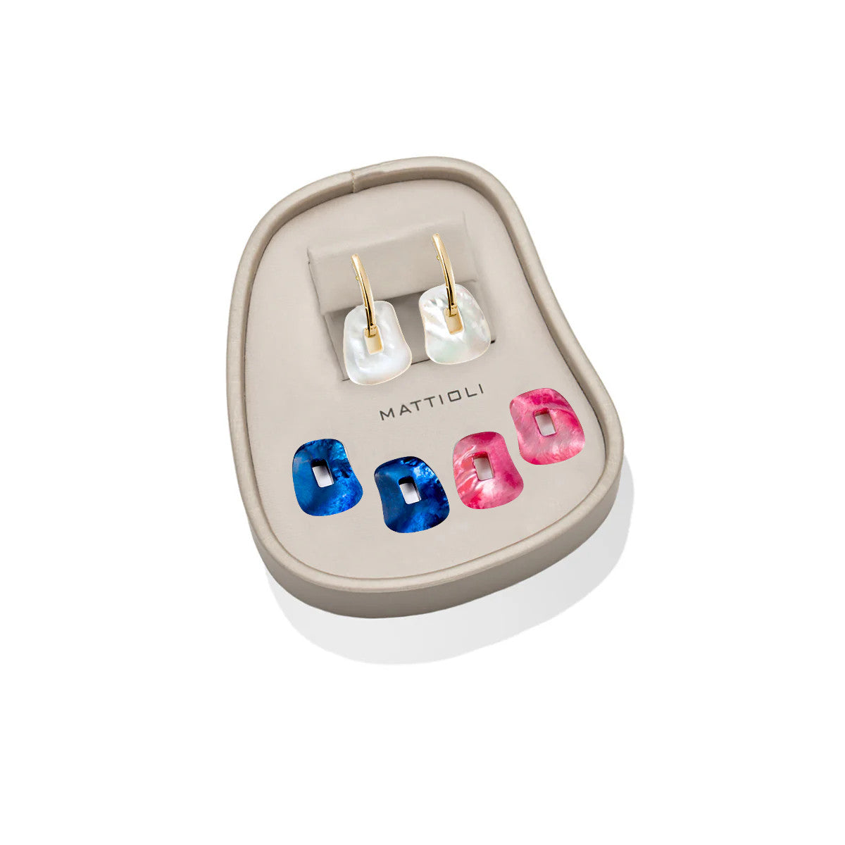 La colección icónica de Mattioli, inspirada en el arte abstracto, une color, creatividad y versatilidad. Cada pieza está realizada en oro de 18k en Italia e incluye tres elementos intercambiables, fáciles de cambiar con un gesto, para estrenar un estilo diferente cada día.
