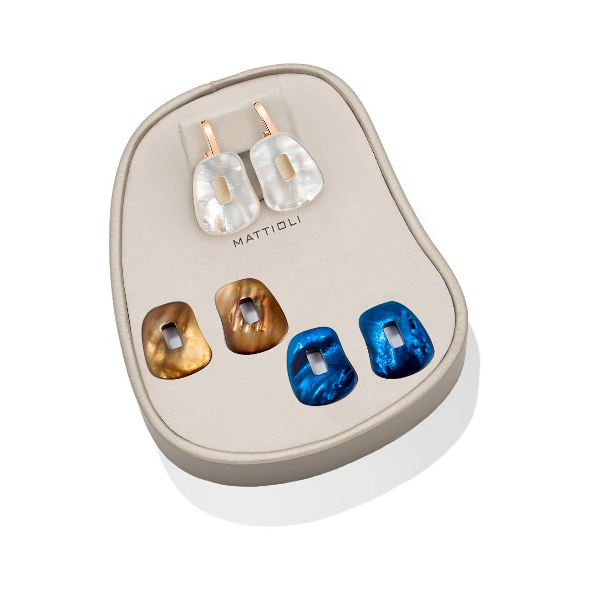 La colección icónica de Mattioli, inspirada en el arte abstracto, une color, creatividad y versatilidad. Cada pieza está realizada en oro de 18k en Italia e incluye tres elementos intercambiables, fáciles de cambiar con un gesto, para estrenar un estilo diferente cada día