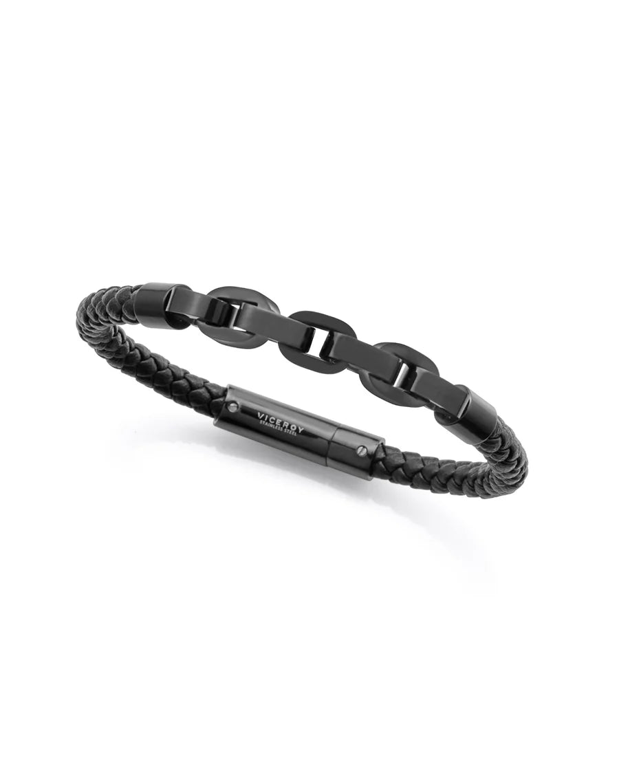 Añade un toque de estilo audaz y sofisticado con esta pulsera de hombre que combina la solidez del acero IP gris con la textura elegante de la piel trenzada negra. Su diseño con eslabones aporta un carácter robusto y distintivo, ideal para quienes buscan un accesorio que destaque por su personalidad. Con una longitud de 21,5 cm, esta pulsera se adapta cómodamente a tu muñeca, convirtiéndose en el complemento perfecto para tus looks más urbanos o formales.