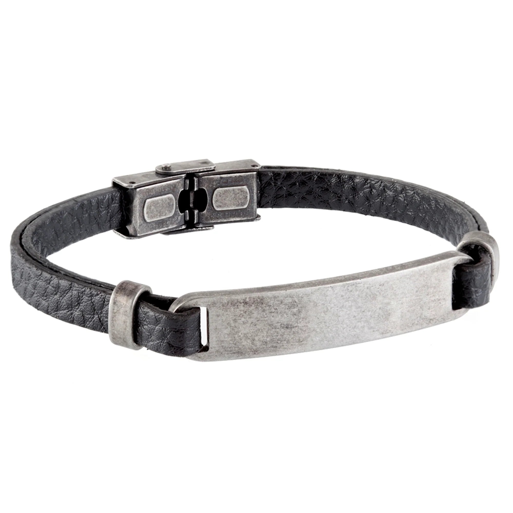 Pulsera masculina de diseño sencillo y elegante, que combina acero con piel. Su estilo limpio y moderno la hace ideal como accesorio diario o para ocasiones informales.