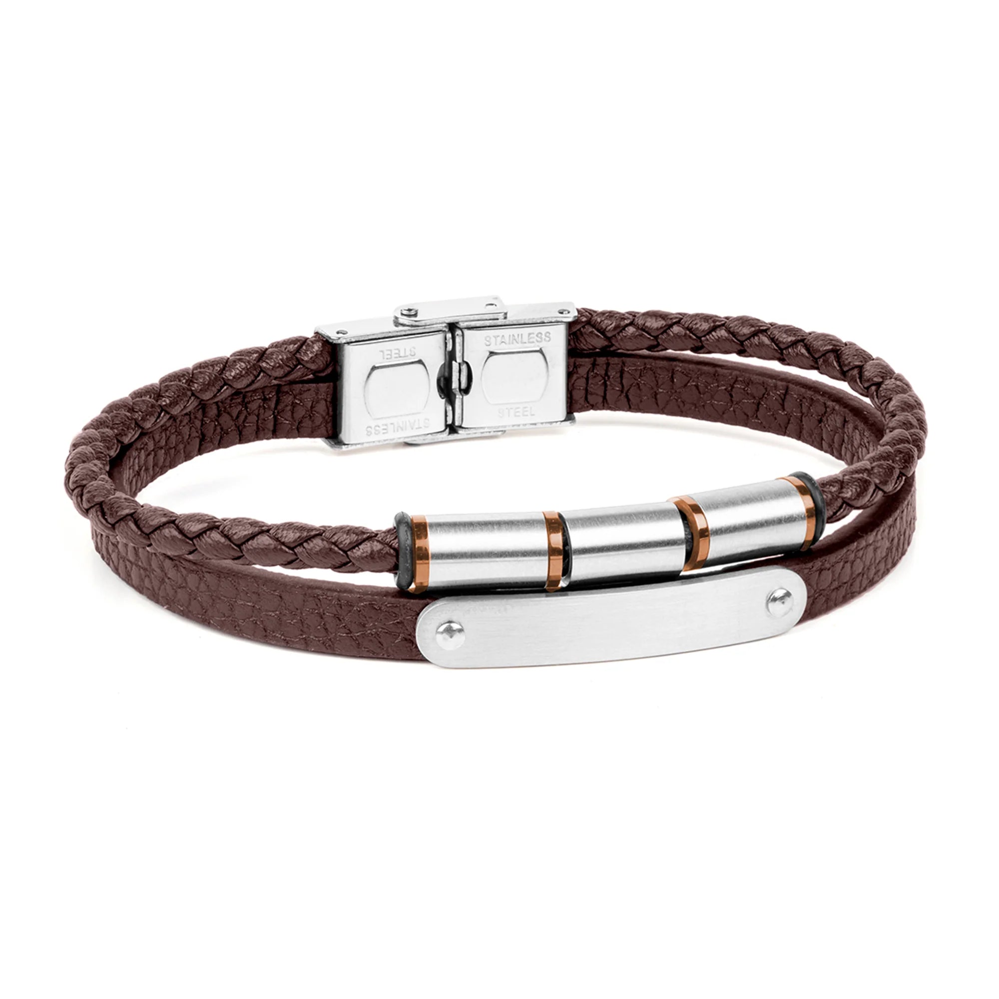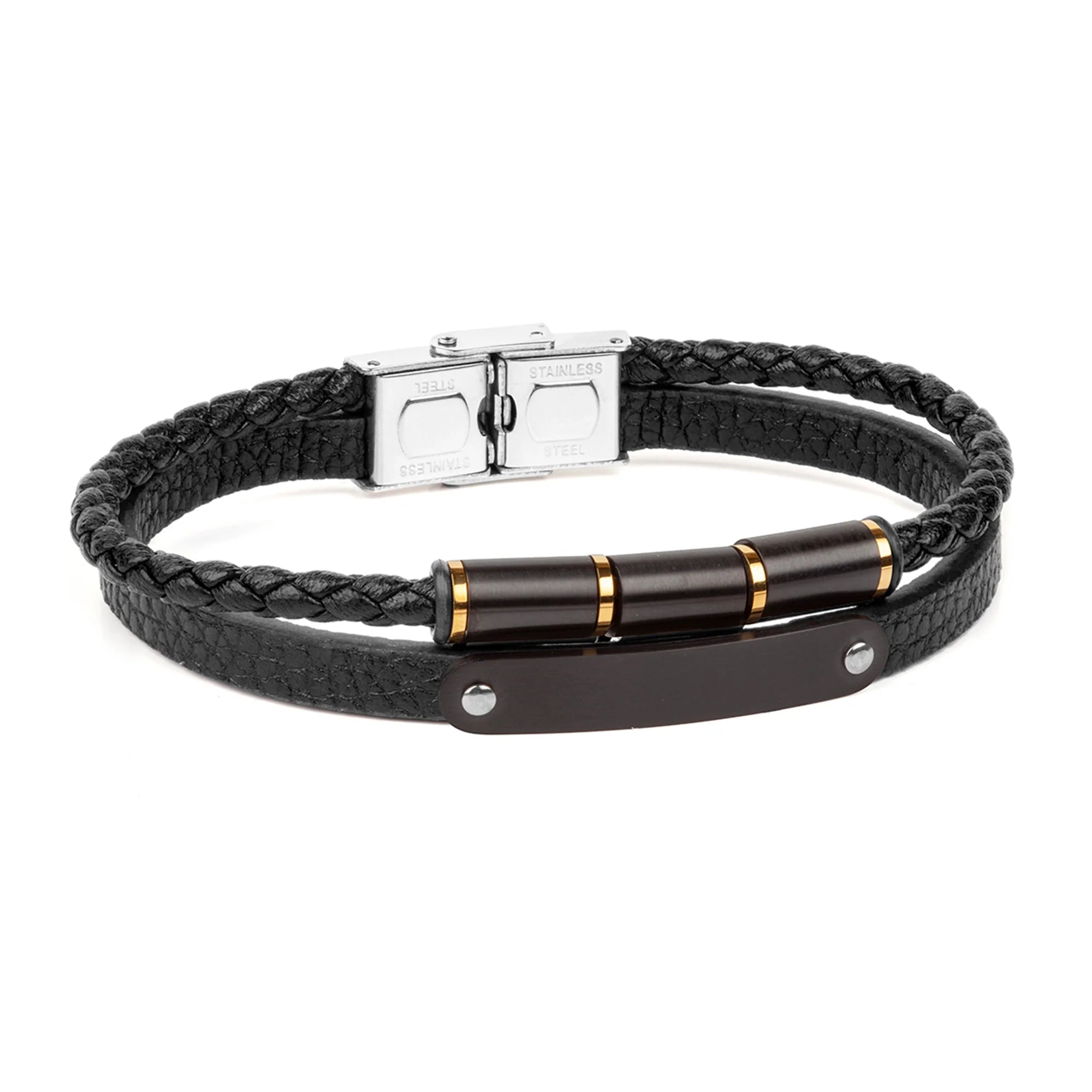 Eleva tu estilo con esta pulsera doble para hombre, diseñada para quienes buscan un accesorio moderno y versátil. Combina acero inoxidable con piel negra de alta calidad, logrando un equilibrio perfecto entre resistencia y elegancia. Su diseño masculino se adapta tanto a looks casuales como formales, aportando un toque sofisticado sin perder sencillez.