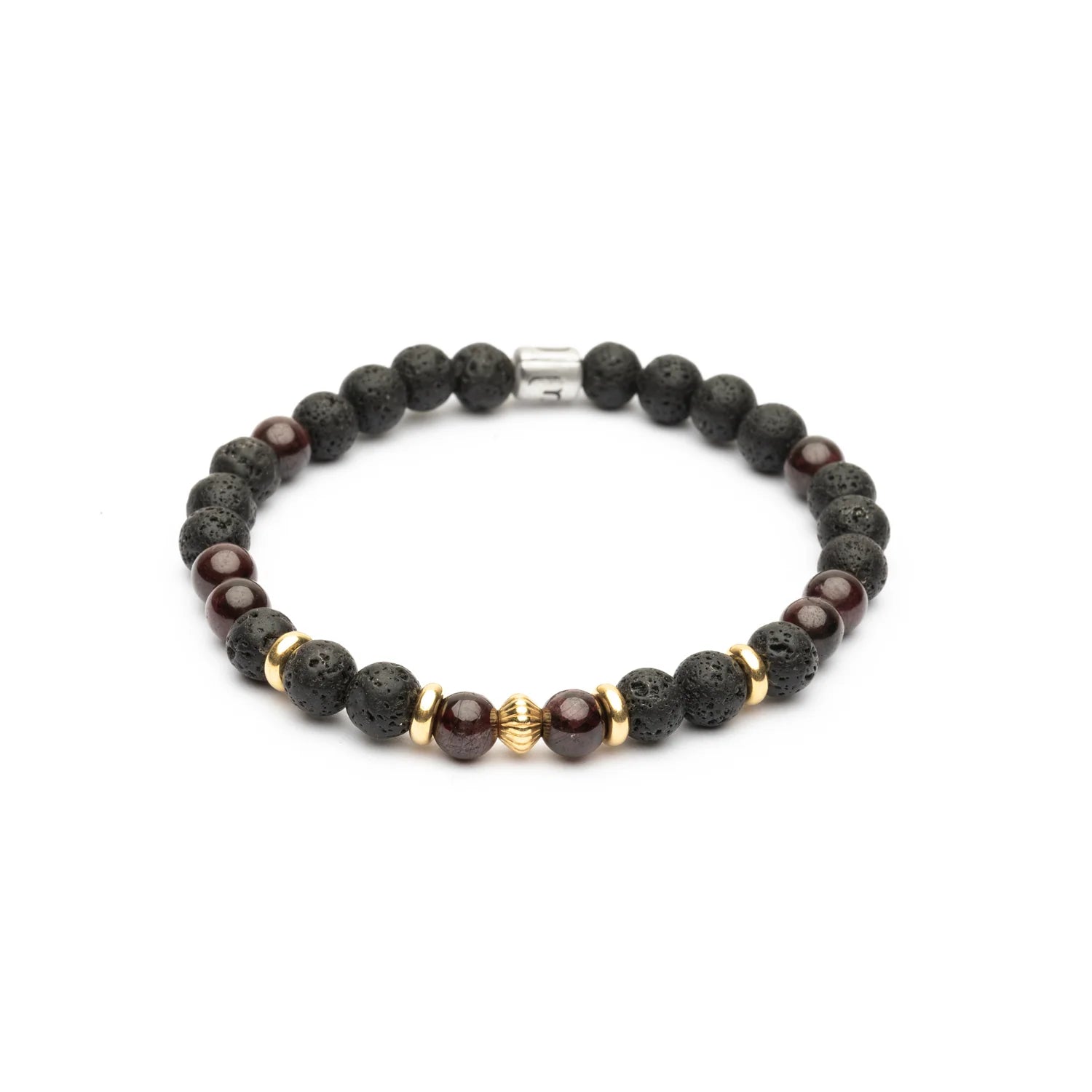 Pulsera Elástica Bolas Grandes granate y piedra volcánica